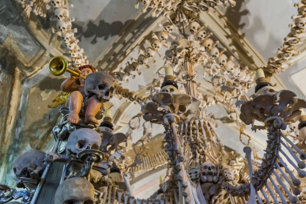 The Sedlec Ossuary, or the Church of All Saints, is a small Roman Catholic chapel located beneath the Cemetery Church of All Saints in Sedlec, Czech Republic. It’s filled with around 70,000 human skeletons, which were artistically arranged to form decorations and furnishings for the chapel. Visitors are warned not to touch anything due to the age and fragility of the bones.
